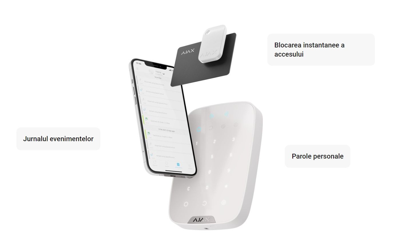 Configurați coduri personale pentru a ști cine și când a fost dezarmat sistemul: un nume de utilizator este afișat în notificare și în jurnalul de evenimente. Pass sau Tag pot fi, de asemenea, atribuite unui anumit utilizator cu permisiuni definite pentru a controla securitatea anumitor grupuri sau a întregului site. Aplicația Ajax vă permite să gestionați permisiunile de acces în timp real. Puteți limita, extinde sau bloca instantaneu accesul.